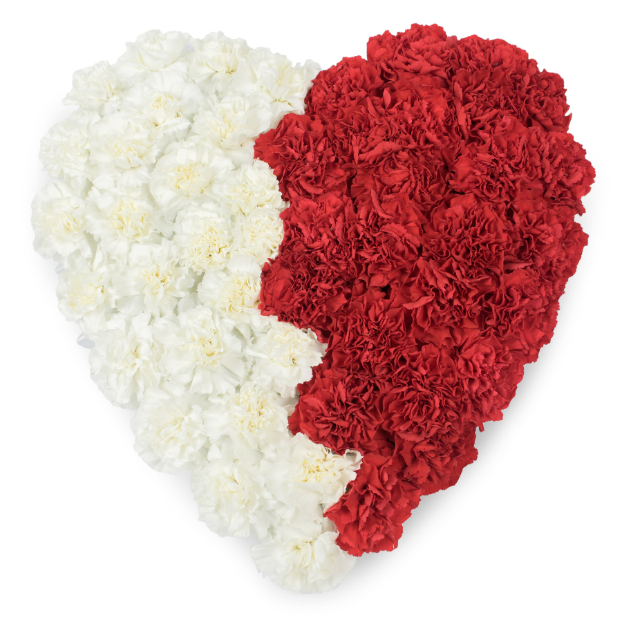 Show your heartfelt condolences with our refined mixed carnations bouquet. Combining white and red carnations, this elegant arrangement symbolizes purity and love, offering a graceful way to express sympathy.